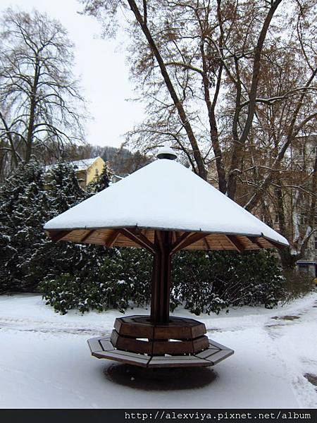 不能入住,至少在這玩個雪紛飛,歐洲的雪特別白,特別鬆軟,特別好吃?總之,難喝的鏽水加上踩了會深陷的白雪,也讓我們在溫泉小鎮留下難忘的回憶啦。