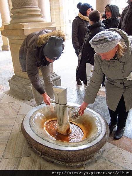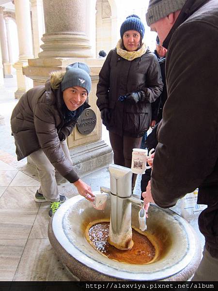 所以現在跳轉到歐洲蜜月第五天去的地方→卡羅維瓦利Karlovy Vary,這個捷克西部波希米亞地區卡羅維發利州的一座溫泉小鎮,聽說這的溫泉水不僅可以喝,還可以養顏美容,不知道有沒有這麼神?但這次去喝得心得是:「好難喝的鏽水喔」可是卻看到許多外國人喝的面不改色,真的想說聲佩服佩服阿。